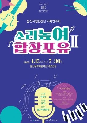 지난해 많은 관객에게 사랑을 받았던 <소리높여 합창포유> 공연이 올해도 울산시민을 찾는다. 뮤지컬, 팝, 한국가요 등 다양한 장르의 음악을 합창곡으로 즐겨보자. 화려한 연출과 아름다운 하모니가 관객들의 귀를 즐겁게 만들 것이다.
