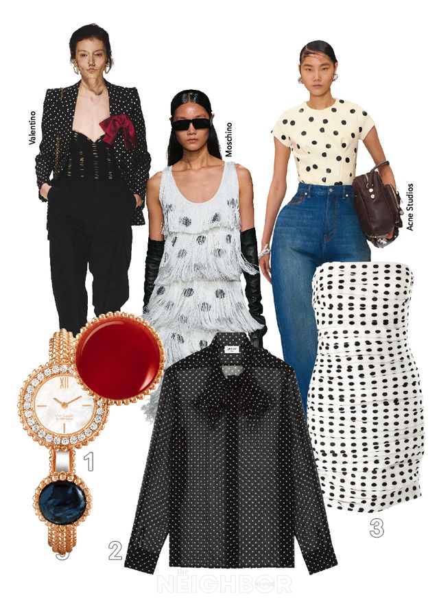 옷장 속에 잠들어 있던 도트와 스트라이프 패턴, 이제 다시 빛을 볼 시간이다. 폴카 도트 패턴은 레트로 이미지를 벗어던지고 프린지 디테일, 입체적인 실루엣과 결합해 세련된 무드로 재해석되었다. 스트라이프 패턴 역시 단정한 마린 룩을 넘어 새로운 변주를 시도하는 중. 강렬한 컬러 블로킹은 물론 스키아파렐리의 비대칭 스트라이프 패턴 룩처럼 옵아트 요소를 가미해 시각적 임팩트를 극대화하고 있다. 하나의 패턴만 선택하기 어렵다면 클래식한 스트라이프 톱에 폴카 도트 패턴 데님 팬츠를 더해 패턴의 믹스 매치로 위트 있는 룩을 완성해보자.