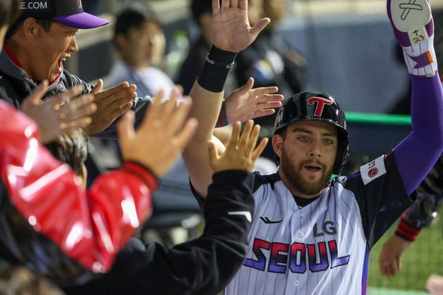 LG 트윈스 외국인 타자 오스틴 딘(32)이 그라운드 안팎에서 박수를 받고 있다.