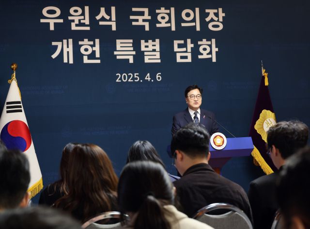 ▲우원식 국회의장이 6일 서울 여의도 국회 사랑재에서 개헌 관련 기자회견을 하고 있다. ⓒ연합뉴스