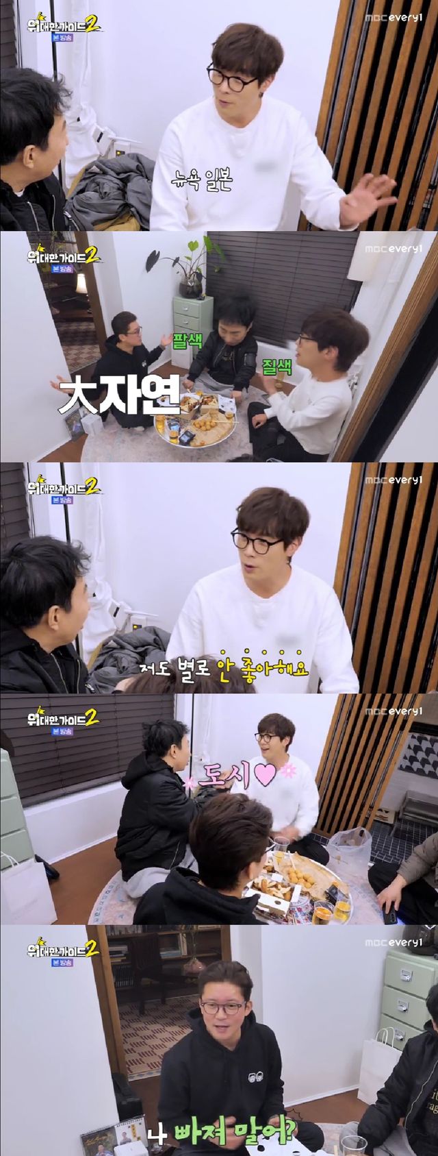 김대호는 "나는 오지 투어 좋아한다. 대자연"이라며 도시 취향과는 전혀 다른 여행 성향을 드러냈고, 박명수와 최다니엘은 "대자연도 잠깐 좋다", "(오지) 별로 안 좋아한다"며 도시 여행지에 한목소리를 냈다.