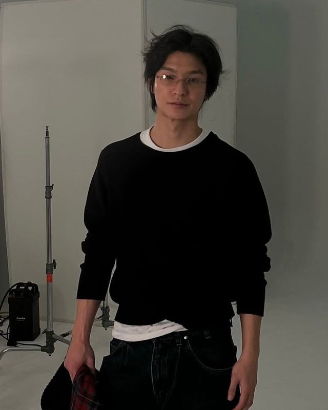 에스팀 소속 모델 채종석의 무테 안경 룩. 깔끔하고 베이직한 블랙 스웨터에 흰색 티셔츠를 받쳐 입은 올드 머니 스타일링에 무테 안경을 매치했다. 단정하면서 튀지 않는 클래식한 안경 스타일링. 긴 머리를 살짝 뻗치게 스타일링한 것도 전체적인 룩을 영해보이게 만든다.