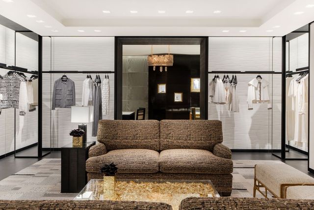 건축가 피터 마리노는 대비와 균형을 통해 샤넬의 과감한 팔레트와 소재의 조화를 이루어 현대적인 감각을 온전히 표현하는 데 집중했다. 브론즈 메탈, 수작업으로 광택을 낸 표면, 검은 용암석의 프레임과 문, 고급스러운 벽 마감재는 직조된 실크 및 울 카펫과 상징적인 트위드 가구와 조화롭게 어우러진다. 또한 매장 벽면에는 가브리엘 샤넬 여사가 추구했던 예술가 후원의 전통을 이어받아 다양한 예술 작품을 찾아 보는 재미 또한 쏠쏠하다. 작가 이배의 작품을 포함해 그레고르 힐데브란트가 제작한 코코 샤넬의 ‘초상화’, 요한 크레텐의 금박 세라믹 조각을 포함한 70 여 점의 예술 작품이 공간을 채우고 있다.