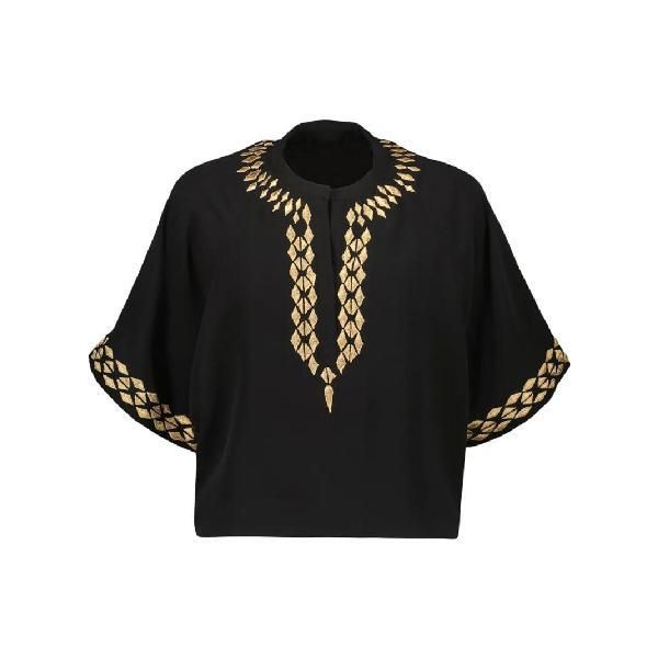 모로코 장인정신과 우아한 무드를 결합한 이브살로몬의 실크 자수 블라우스.
