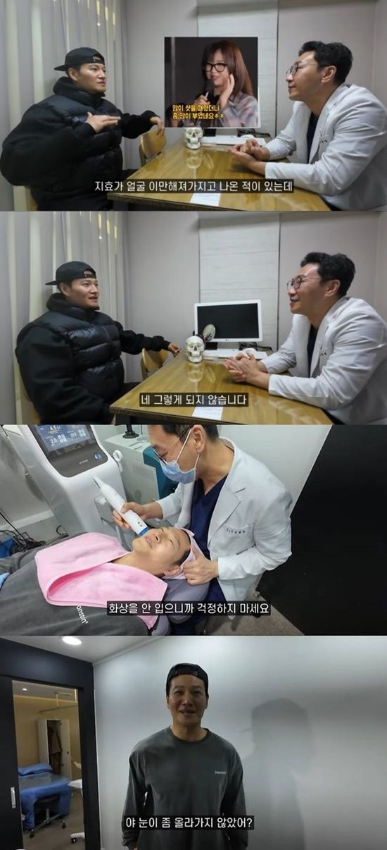 오른쪽 얼굴의 시술을 끝낸 김종국은 거울을 바라보며 "눈이 왜 이렇게 올라갔냐. 눈이 엄청 올라갔다"고 연신 놀라워했다.