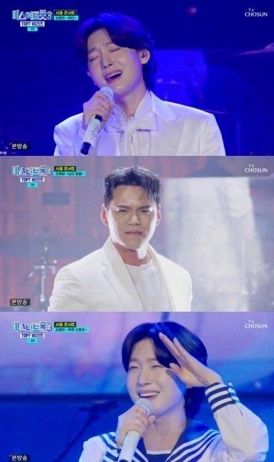 그런가 하면 眞김용빈이 세라복을 입고 일본의 대표 인기곡 마츠다 세이코의 ‘푸른 산호초’를 원곡 그대로 소화해 감탄을 자아냈다. 곡의 싱그러운 멜로디, 김용빈의 독보적인 음색과 상큼한 비주얼이 환상적인 조화를 이룬 것이다. 또 천록담, 춘길, 추혁진이 함께 브루노마스의 ‘Uptown Funk’도 불렀다. 격한 댄스를 추면서도 흔들림 없는 세 사람의 가창력과 리듬감이 돋보였다.