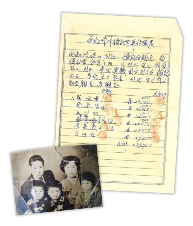 ▲ 빚잔치 서류와 가족사진. ⓒ김동연
