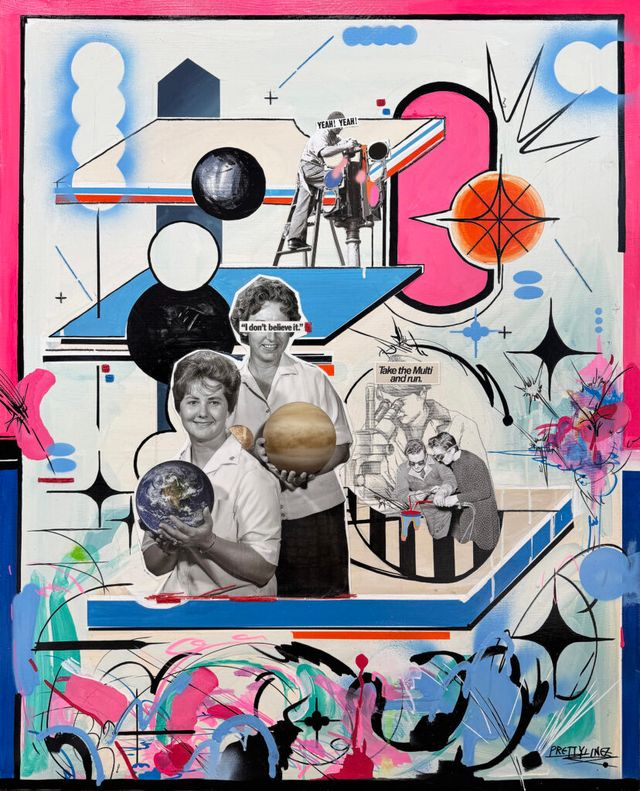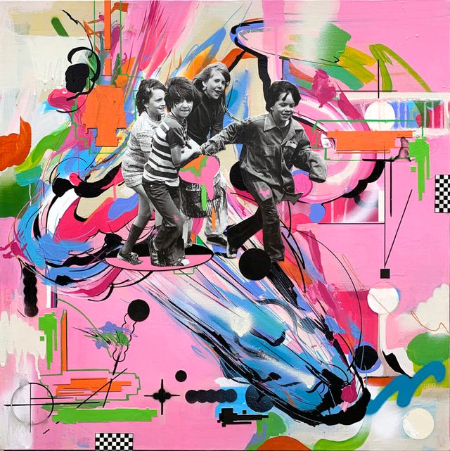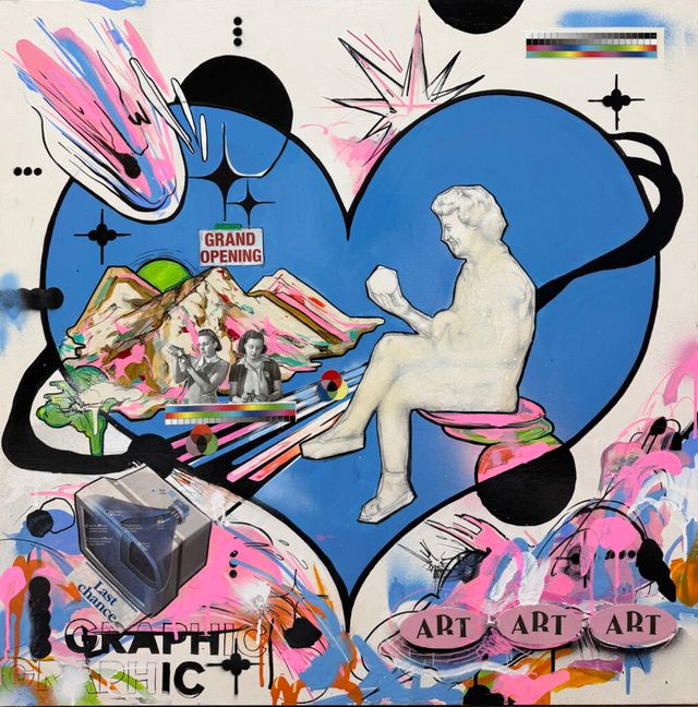 항상 회화와 그래픽을 어떻게 한 화면에 자연스럽게 결합할 수 있을지 고민하다 보니 지금의 형태로 자연스레 흘러온 것 같다. 최근에는 페인팅 작업 후에 사진을 찍고 그 위에 그래픽으로 작업한 뒤 다시 캔버스에 옮기는 방식을 시도 중인데, 원본과 복제본이 한 화면에 공존하는 느낌이 무척 흥미롭게 다가온다. 이후의 작업에서 더 발전시켜보려 한다.