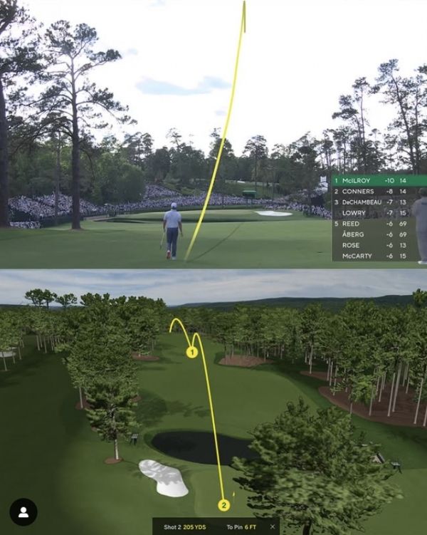 매킬로이는 2번홀(파5·585야드)에서 티샷한 볼은 369야드 날아갔다. 핀과 220야드거리에서 친 볼이 238야드로 그린을 넘어가 핀과 18야드 남았다. 칩샷한 볼이 그대로 홀을 파고 들며 '천금의 이글'이 됐다.
