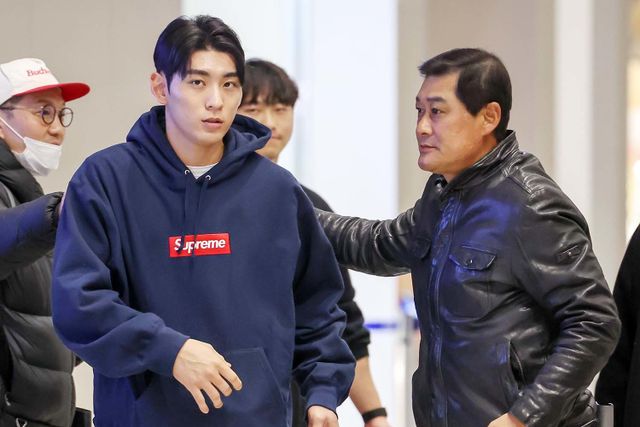 이정후가 지난 1월 13일 오후 인천국제공항을 통해 출국하며 아버지 이종범의 격려를 받고 있다. / 뉴스1