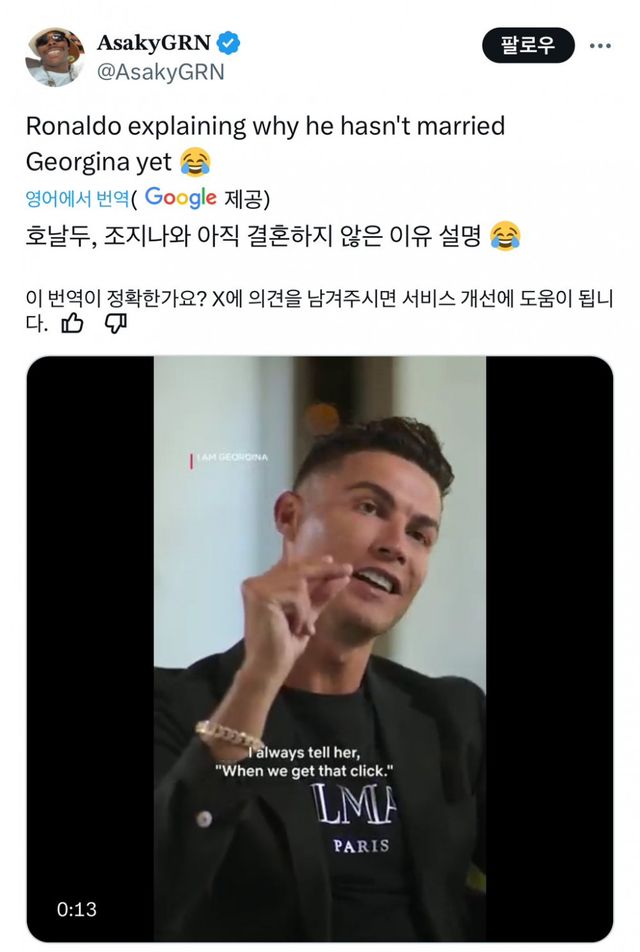 그 이유는 여자친구 조지나한테 청혼 안해서