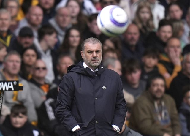 Tottenham Hotspur manager Ange Postecoglou reacts on the touchline during the English Premier League soccer match between Wolverhampton and Tottenham Hotspur at Molineux Stadium in Wolverhampton, England, Sunday, April 13, 2025. (Jacob King/PA via AP) UNITED KINGDOM OUT; NO SALES; NO ARCHIVE; PHOTOGRAPH MAY NOT BE STORED OR USED FOR MORE THAN 14 DAYS AFTER THE DAY OF TRANSMISSION; MANDATORY CREDIT/2025-04-13 22:38:27/ <저작권자 ⓒ 1980-2025 ㈜연합뉴스. 무단 전재 재배포 금지, ai 학습 및 활용 금지>