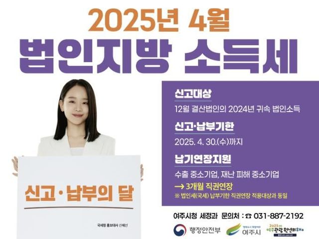 [와이뉴스] 여주시는 2025년도 4월 한 달간 법인지방소득세 집중 신고·납부의 달을 운영한다.
