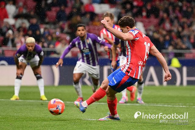 아틀레티코가 곧바로 응수했다. 전반 24분 바야돌리드 산체스가 박스 안에서 시메오네의 발등을 밟으며 파울을 범했고 주심은 역시 VAR 확인 끝에 페널티킥을 판정했다. 이를 알바레스가 깔끔하게 정면 마무리하며 승부의 균형을 맞췄다.