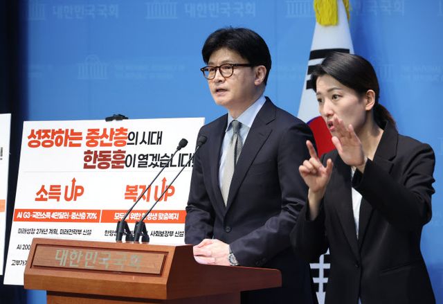 한 전 대표는 15일 국회 소통관에서 열린 기자회견에서 “선진국이 된 지금 우리는 중산층을 더욱 키워야 한다”며 “저는 성장하는 중산층의 시대를 핵심 공약으로 제시한다”고 말했다. 그는 더불어민주당과 그 유력 대선 주자인 이재명 전 당 대표를 겨냥해 “이재명의 민주당의 포퓰리즘 정책처럼 가짜 경제로 돈만 퍼준다고 약속해선 안 된다”고 말했다.