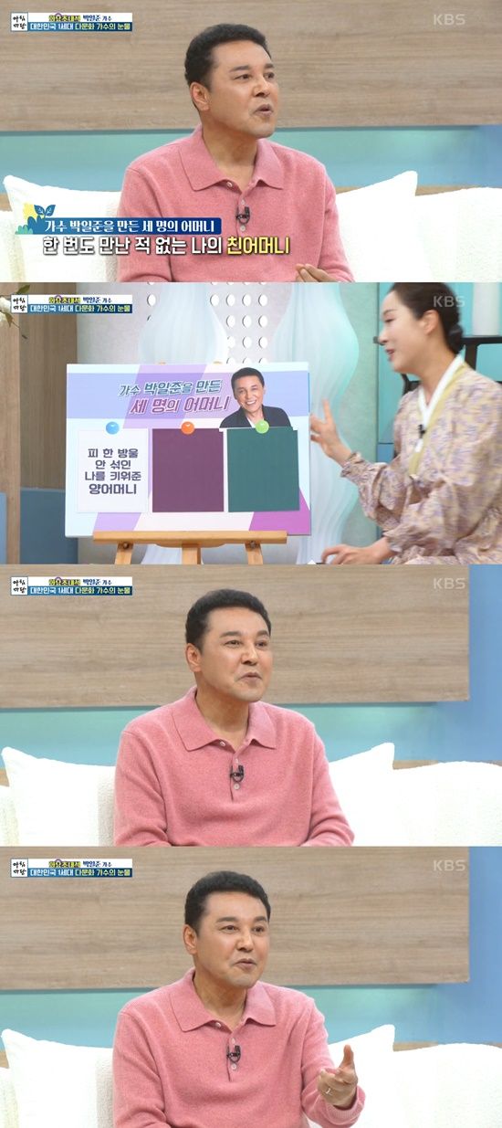 이날 박일준은 자신을 만든 세 명의 어머니가 있었다고 했다. 박일준은 "제가 친어머니가 있었다. 저를 키워주신 양어머니는 친어머니와 언니 동생 하는 사이였다"며 친어머니에 대해 언급했다.