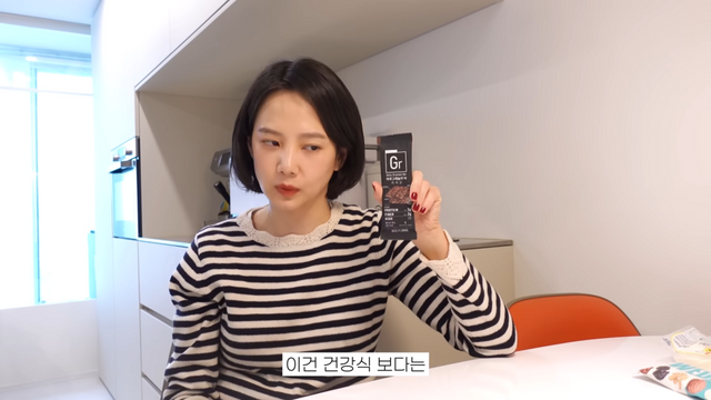“아니, 난 빵을 먹을래.” 관리 중에도 한소희는 간식을 피하지 않는 모습이다. 라라스윗의 아이스크림과 다신샵의 통밀당 저당 크림빵 2종을 추천한다. 에리스리톨을 사용해 당류가 5g 미만이고, 팜유 대신 동물성 지방인 우유, 견과류 베이스의 맛을 살린 제품 위주로 현명하게 고른다는 걸 알 수 있다. “호르몬이 마구 날 뛸 때 짜고 단 맛이 땡기는 날에는 프롬핏 프로틴칩도 좋은 선택이 될 수 있다”며 친절히 팬들에게 다양한 노하우를 알려주려는 마음마저 느껴진다.