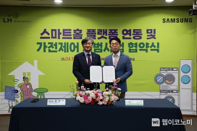 전날 LH는 삼성전자와 경기 성남시 LH 경기남부지역본부에서 스마트홈 플랫폼 연동 및 가전제어 시범사업을 위한 업무협약을 체결했다.