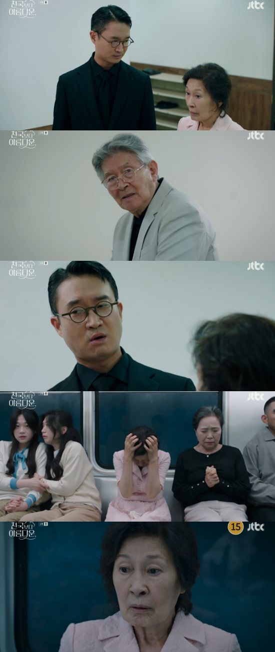 (엑스포츠뉴스 이이진 기자) '천국보다 아름다운' 손석구가 천국에서 재회한 김혜자를 보고 당황했다.