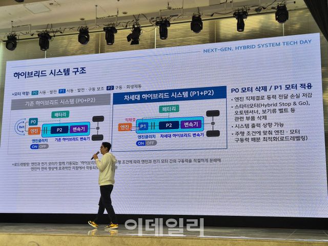 엔진에 직접 체결된 P1 모터는 기존 하이브리드 시스템에서 엔진에 벨트로 연결된 P0 모터에 비해 마찰 손실이 없어 에너지 전달 효율이 높으며, 주행 상황에 따라 P2 모터와 함께 차량에 구동력을 보조해 연비와 동력 성능을 동시에 개선한다.