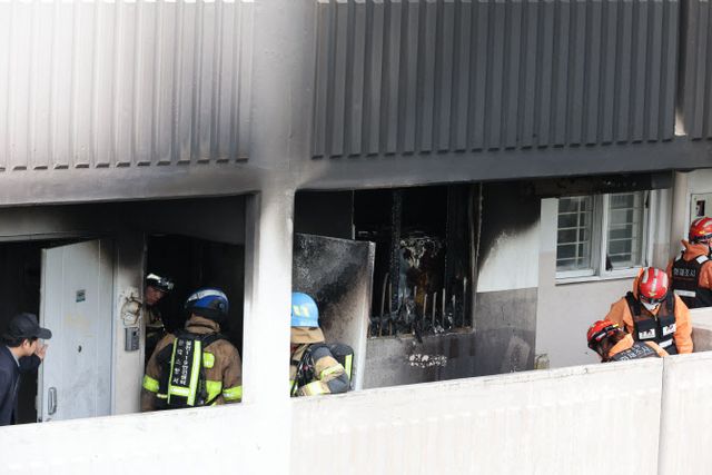 21일 서울 관악구 봉천동 한 아파트에서 화재가 발생, 진화 후 소방대원들이 현장을 살펴보고 있다. (사진= 연합뉴스)