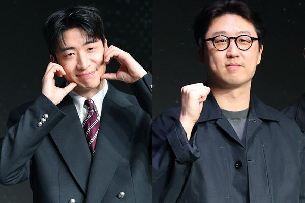 유수민 감독, 유수빈 형제는 21일 오전 서울 마포구 호텔 나루 서울 엠갤러리에서 열린 넷플릭스 오리지널 시리즈 ‘약한 영웅 Class 2’ 제작발표회에 참석했다. 포토타임에서 끝과 끝의 자리에서 포즈를 취했으나, 똑 닮은 외모로 시선을 사로잡았다.