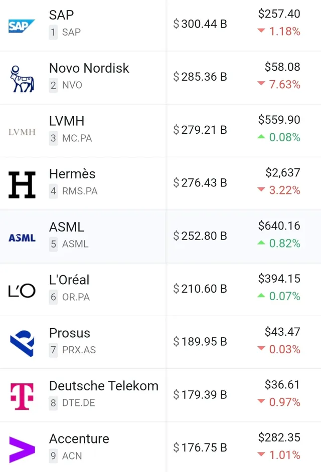 유럽 시총 1위에서 내려옴