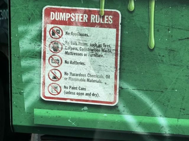트럭 후면에는 ‘적재 불가 품목’이라는 안내 표지판까지 부착돼 있다. 여기에는 가전제품, 타이어, 카펫, 매트리스, 가구, 배터리, 페인트 통, 유해 화학물질, 오일, 인화성 물질 등이 적재 불가 품목으로 나열돼 있고, ‘EM 폐기물 관리’라는 문구도 함께 적혀 있다.