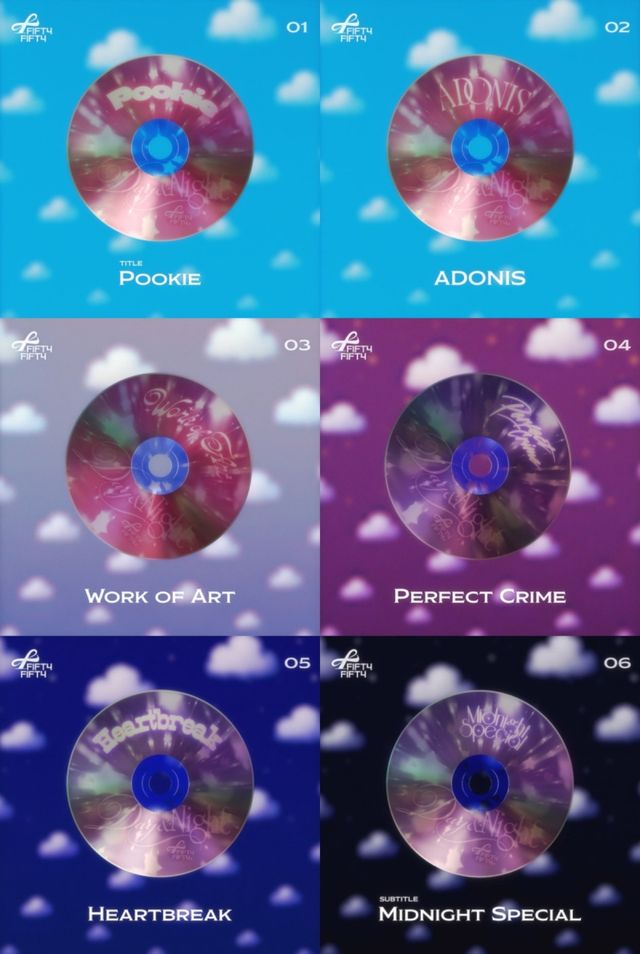피프티피프티는 더블 타이틀곡 ‘푸키’와 ‘미드나잇 스페셜’ 외에도 감미로운 보컬이 청량함을 더하는 ‘아도니스’, 올드스쿨 R&B 감성의 레트로풍 발라드 ‘워크 오브 아트’, 어쿠스틱 기반의 발라드로 섬세한 보컬이 인상적인 ‘하트브레이크’ 그리고 선공개곡 ‘퍼펙트 크라임’까지 더욱 다채로워지고 짙어진 색깔을 선명하게 그려낼 예정이다.