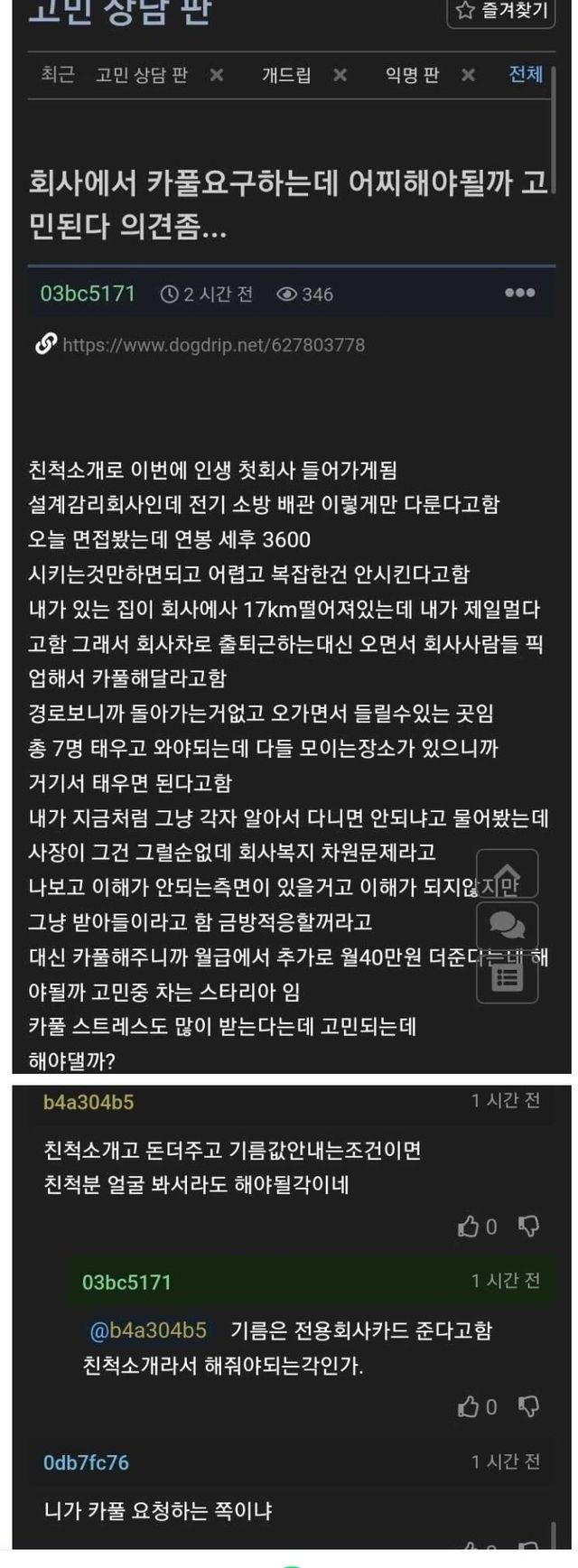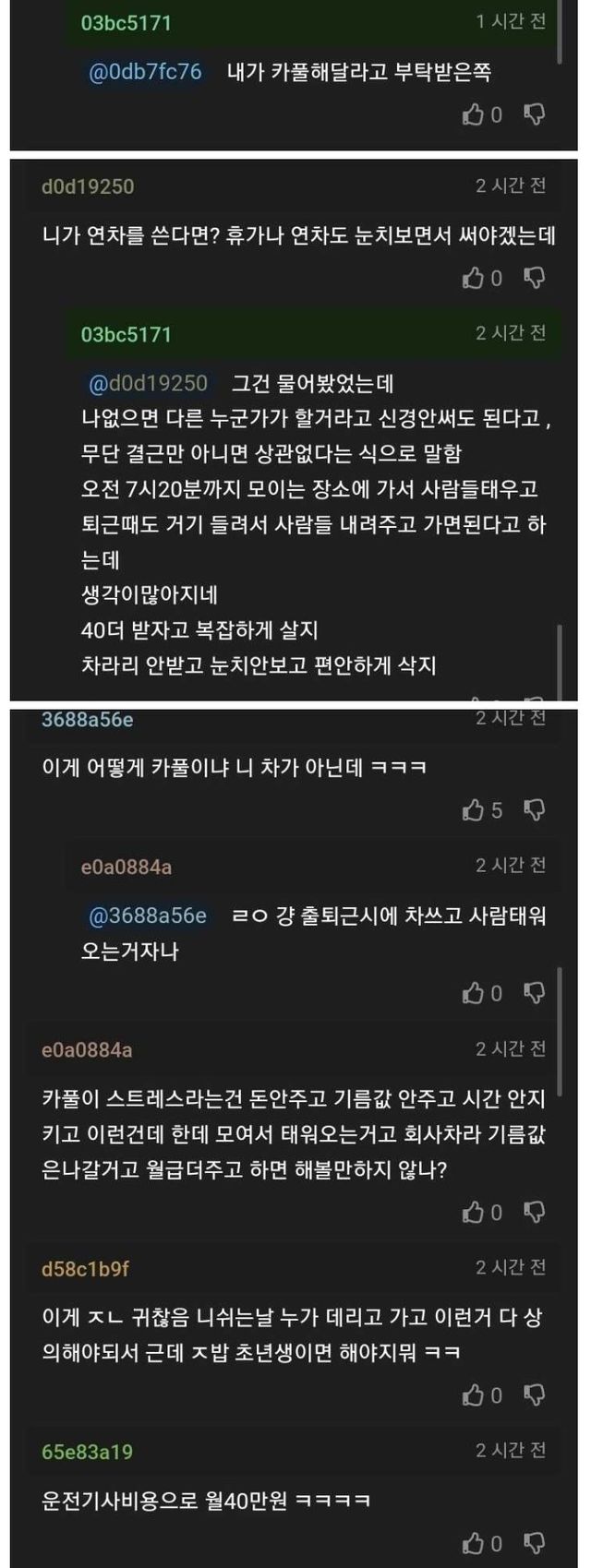 출퇴근을 카풀해줬던 입장에서 개꿀로 보임