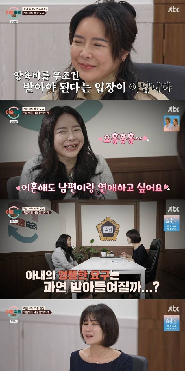 남편 측 변호사는 "양육비 줄게요"라고 말해 웃음을 자아냈다. 서장훈은 "이혼하는데 무슨 연인 관계를 유지하냐"라고 했다.