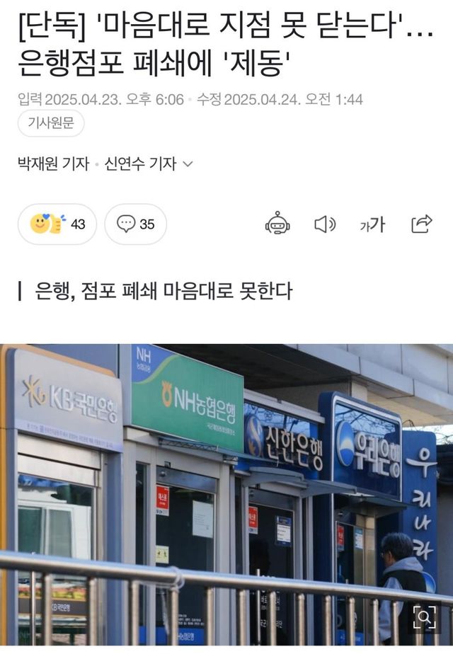 (이미 시도한 사례가 있는것으로 알고 있지만) 여러은행이 하나의 점포를 공동운영 하는것도 대안이 될 수도 있고요