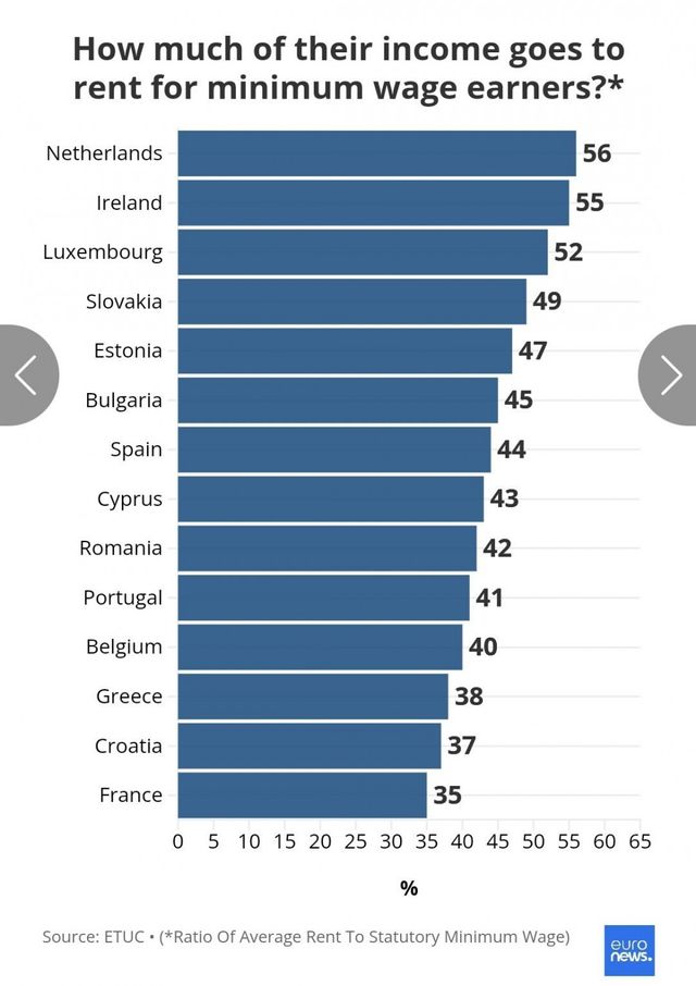 [ 유럽 최저임금 기준 월급 평균 40 - 50% 가 월세로 나가고 대도시의 경우 월급 50 - 70% 까지도 ]