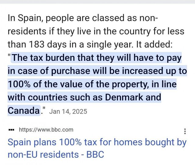 그리고 당연히도 국가는 그나라 국민을 위한거지 외국인 투자자나 관광객을 위한게 아님. 그래서 최근 스페인은 외국인 부동산 소유주에게 100% 세금을 매기는 법안 시행 계획에 있음.