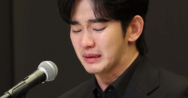 배우 김수현이 3월 31일 오후 서울 마포구 스탠포트호텔에서 긴급 기자회견을 열고 고(故) 김새론이 미성년자일 때부터 교제했다는 의혹을 비롯한 각종 논란에 대해 입장을 밝히고 있다. / 뉴스1