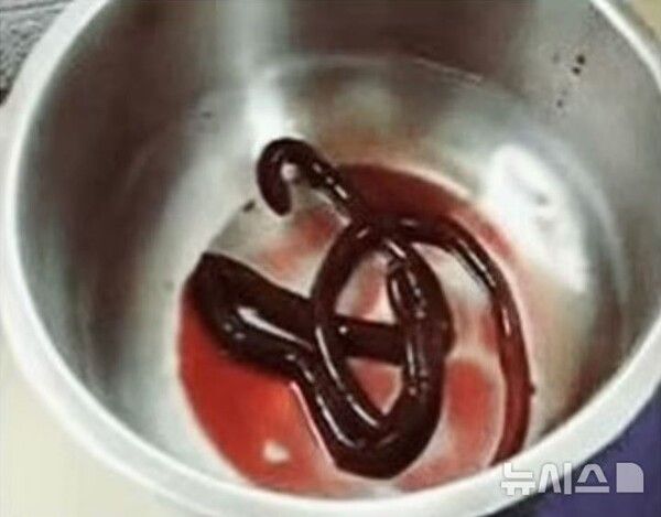 혈액 검사에서는 기생충 감염 가능성이 확인됐고, 이후 소변 주머니에서 피와 함께 꿈틀거리는 붉은 기생충이 발견됐다.