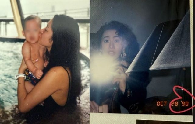 공개된 사진에는 1990년 10월 촬영된 고현정의 앳된 모습이 담겼다. 또 다른 사진은 수영장에서 아들로 보이는 아기를 안고 볼 뽀뽀를 하고 있는 고현정의 모습이다.