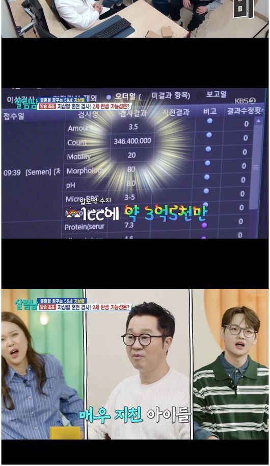 대망의 지상렬 검사 결과는 더욱 놀라웠다. 담당 의사는 "정자의 양은 독보적으로 많다. 1cc 기준 3억 4천6백만 마리로, 김상혁의 10배에 달하는 수치"라며 "의사로서 처음 보는 수치"라고 감탄했다. 예상치 못한 '정자왕' 등극에 지상렬은 환호하며 기쁨을 감추지 못했다.