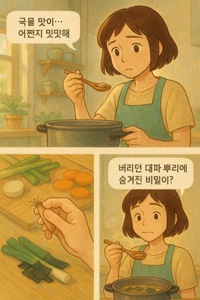 남은 대파 뿌리는 세척 후 냉동 보관해두면 필요할 때마다 간편하게 꺼내 쓸 수 있어 활용도가 높다. 짧은 시간 동안 손질만 잘하면 매번 육수 낼 때 훨씬 깊고 풍부한 맛을 낼 수 있다.