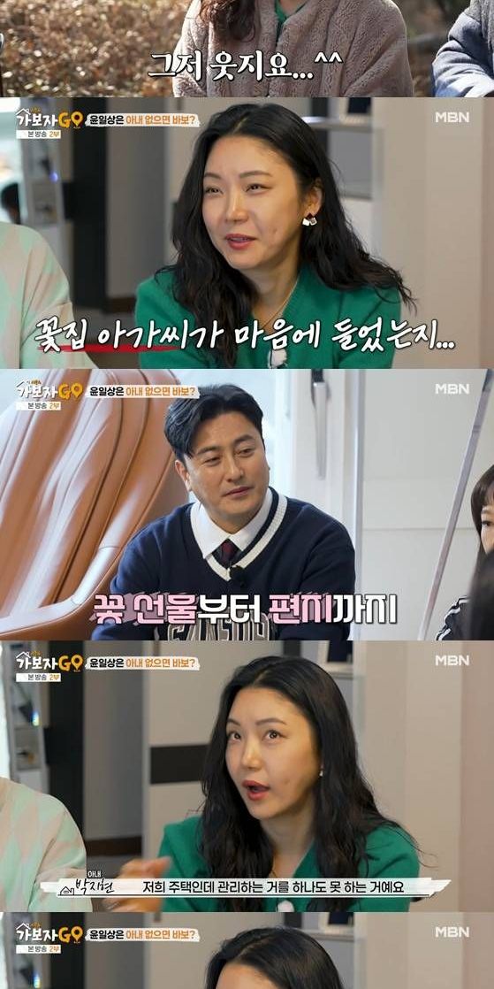 아내는 "주택인데 관리를 하나도 못하더라. 전구 가는 것도 못한다. 운전도. 고깃집 가면 와이프에게 집게를 달라고 한다"라고 말해 눈길을 끌었다. 그러면서 "저는 그걸 싫다고 하는 게 아니라 (윤일상에게) 제가 꼭 필요한 사람이지 않냐. 그게 너무 좋은 것 같다"고 했다.