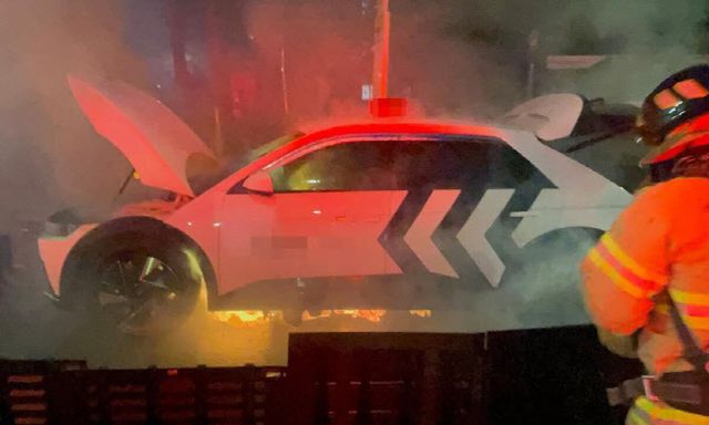 30일 부산소방재난본부에 따르면 이날 오전 4시48분께 부산 부산진구 개금동 한 아파트 앞 도로를 달리던 전기차 택시에서 불이 났다.
