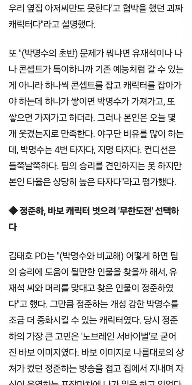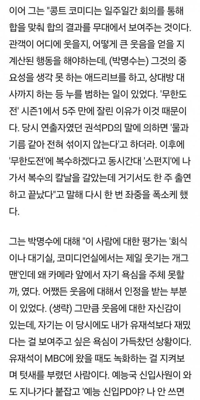 박명수가 캐릭터를 다 가져가려는 성향때문에