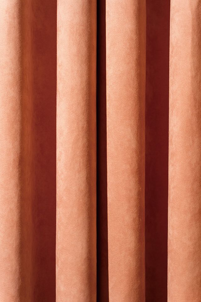 지난 4월 초 이탈리아 밀란에 위치한 알칸타라 본사로 향하는데, 그날의 인상과 감각이 되살아났다. 메체나테 거리에 자리한 본사는 한눈에 보기에도 예사롭지 않았다. 특히 널찍한 직사각형 형태의 창을 사선으로 에워싼 붉은색 철제 프레임이 시선을 끌었다. 안으로 들어서니 영화 <서브스턴스> 속 장면이 연상되는, 인공적이고 기다란 복도가 나왔다. 양 끝의 벽은 겉보기에 콘크리트 같은 모양새지만, 만져보니 고급스러운 질감이 느껴졌 다. 놀랍게도 알칸타라 소재를 활용한 벽이었다.