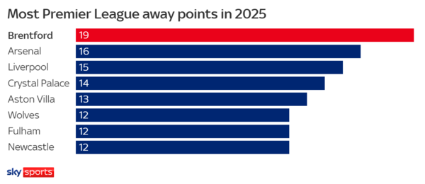 브렌트포드는 2025년 들어 원정 경기에서만 19점을 기록했는데, 이는 올 해 프리미어리그 전체 팀 중 최다 기록이다. 시즌 초반 8번의 원정에서 단 1점에 그쳤던 팀이, 이제는 리그 최강의 원정팀으로 탈바꿈한 것이다.