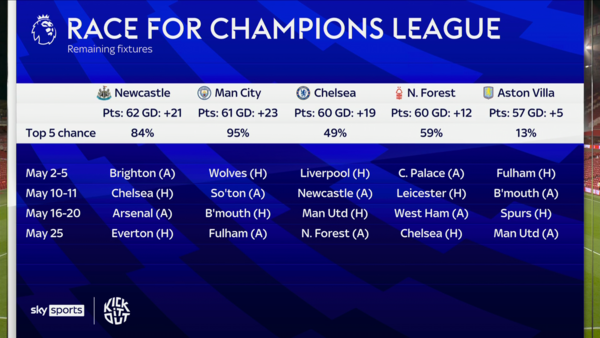 반면 노팅엄은 최근 5경기 중 4패, 특히 홈에서 2연패를 기록하며 급격히 흔들리고 있다. 챔스 진출을 노리고 있던 포레스트는 이제 리그 6위에 머물고 있으며, 남은 네 경기에서 최소 3승이 필요해졌다. 특히 마지막 라운드에서는 첼시와의 홈경기가 예정되어 있어 험난한 일정이 예고된다.