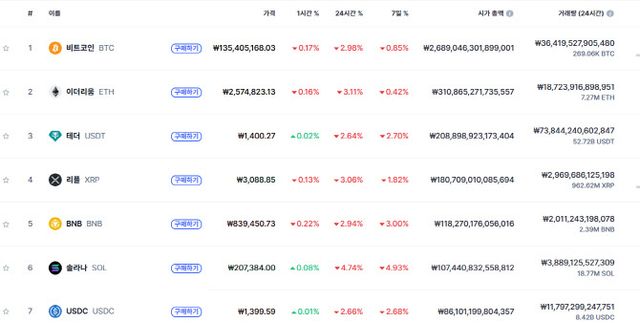 국내 가상자산 주요 거래소에서는 비트코인 가격이 소폭 하락해 1억3800만원대를 기록했다. 업비트에서 비트코인은 24시간 전 대비 0.37% 내린 1억3812만5000원을 기록했다. 같은 시간대 기준 빗썸에서는 비트코인이 0.76% 내린 1억3811만3000원을 기록했다.