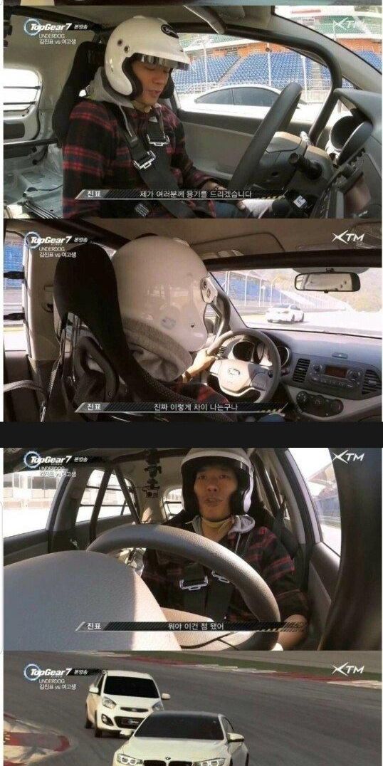 김진표가 모는 모닝 vs 면허 딴 지 10일 된 여고생이 모는 BMW M4 서킷대결.jpg