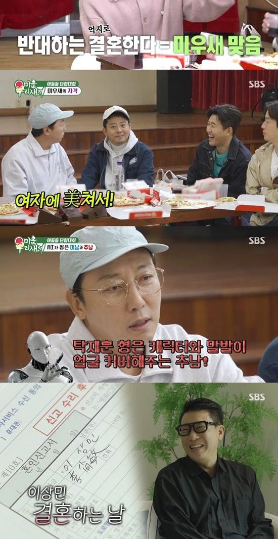 한편 미남 VS 추남으로 팀을 나누기 위해 AI에 물어보기로 한 아들들. AI는 최진혁과 김희철, 허경환은 미남이라 고른 반면, 탁재훈과 이상민, 김준호는 추남이라고 거침없이 대답해 웃음을 자아냈다. 결과를 받아들이지 못하는 탁재훈에게 AI는 "탁재훈은 캐릭터와 말발이 커버해 주는 추남"이라고 단호하게 대답해 스튜디오를 웃음바다로 만들었다.