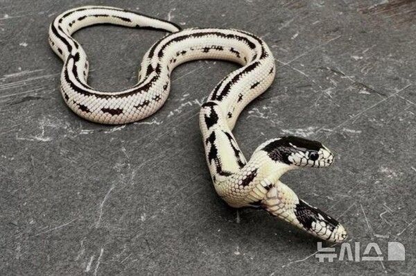 하나의 척추를 공유한 채 태어난 이 쌍두사는 약 10만 마리 중 1마리꼴로 발생하는 매우 희귀한 사례다.