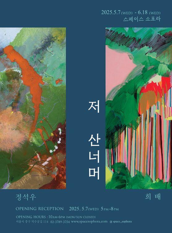‘저 산 너머’ 전시회에는 작가 희배와 정석우가 작품을 내놓았다. 스페이스 소포라 갤러리는 “두 작가의 작품들 속에는 산과 능선, 하늘과 땅, 자연과 사람, 그리고 그 이상의 많은 것들이 녹아들어 있다”면서 “두 작가의 작품은 서로 다르지만 묘하게 조화를 이루며 사이좋게 놓여 우리를 토닥일 것이다”고 설명했다.